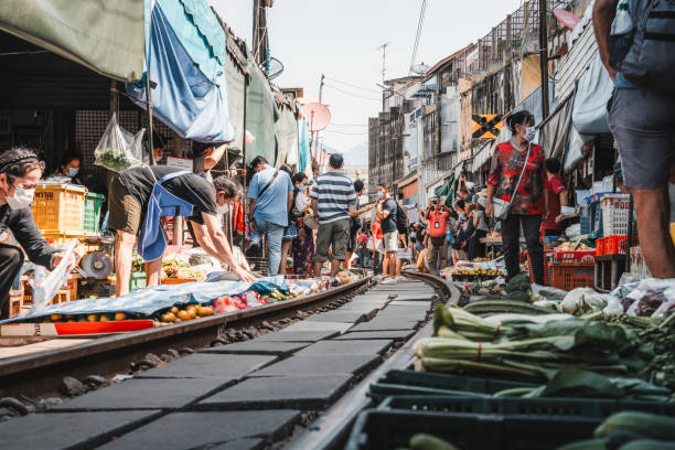 Plongez dans l’effervescence authentique de la Thaïlande en explorant le vibrant marché flottant de Damnoen Saduak et le fascinant marché sur rails de Mae Klong.