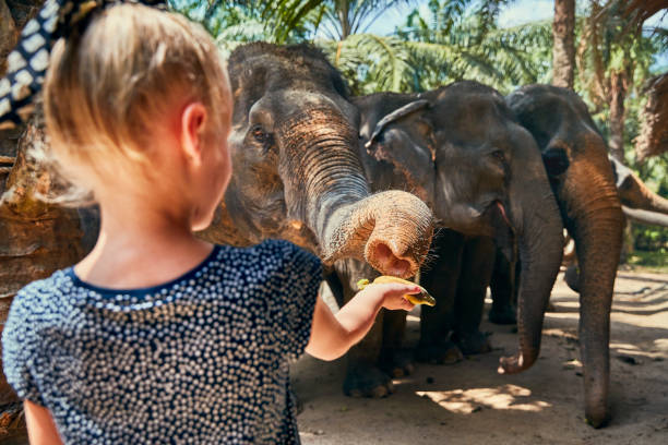 Préparez le repas des éléphants. Il est fabriqué avec du riz, du tamarin, du sel et des bananes. Apprenez à mieux connaître les éléphants en les nourrissant, puis en les baignant dans la rivière et en les regardant jouer. Les jeunes éléphants aiment particulièrement jouer dans l’eau. Faites ensuite une promenade avec les éléphants sur un terrain plat au bord du ruisseau que vous traverserez pour continuer dans de hautes herbes où vous pourrez regarder les éléphants se nourrir et interagir.